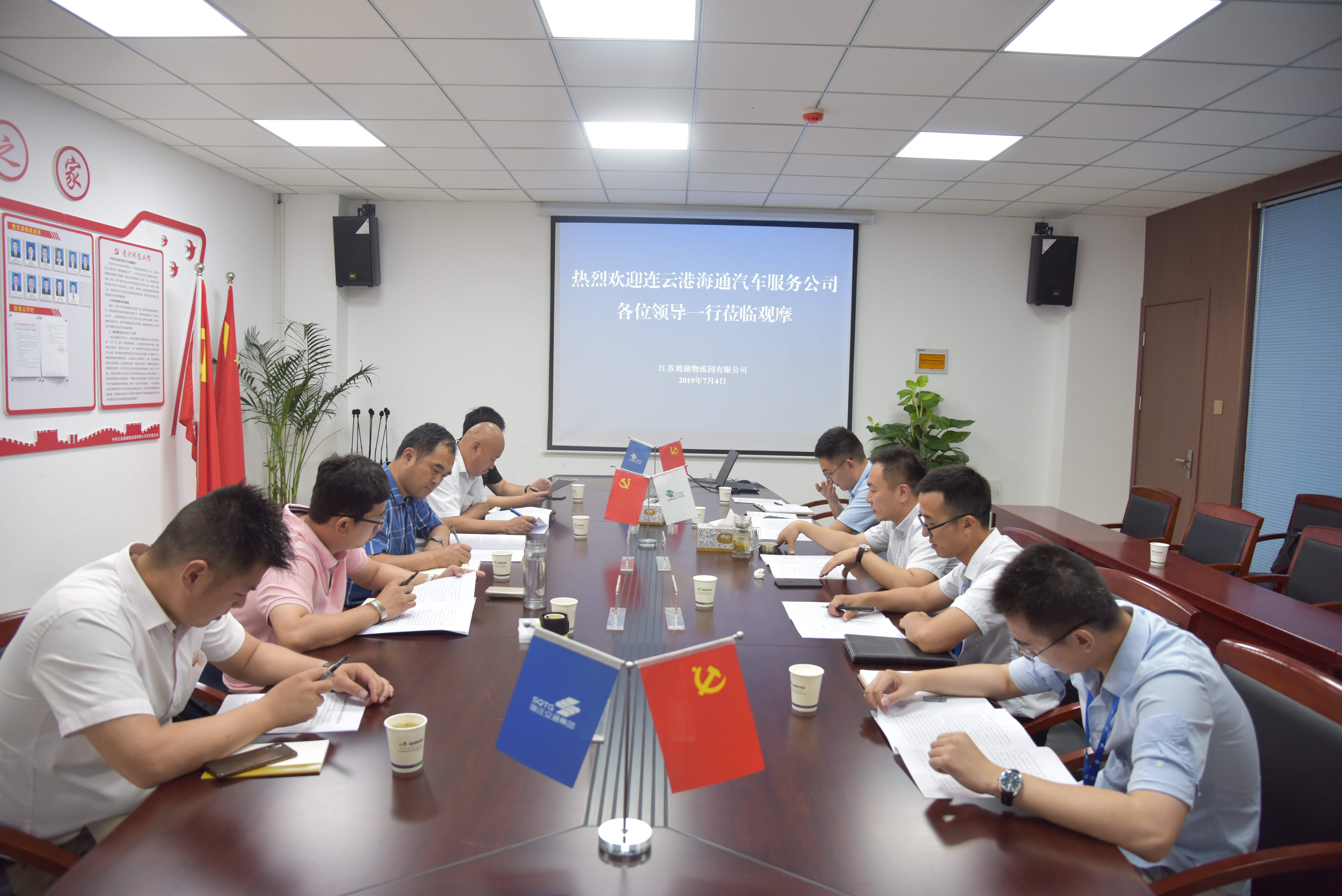 7月4日上午,连云港海通汽车服务公司副总经理、工会主席张春军一行莅临江苏通湖物流园进行观摩交流。