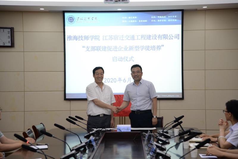 为进一步提升员工综合技能水平,加快高技能人才梯队建设, 6月9日上午,宿迁交建与淮海技师学院举行“企业新型学徒制培养”校企合作签约仪式,正式开启校企联合开展职业技能培训的全新篇章。淮海技师学院副院长、机关党委书记王治和宿迁交建党总支书记、总经理吴胜坤参加了签约仪式。
