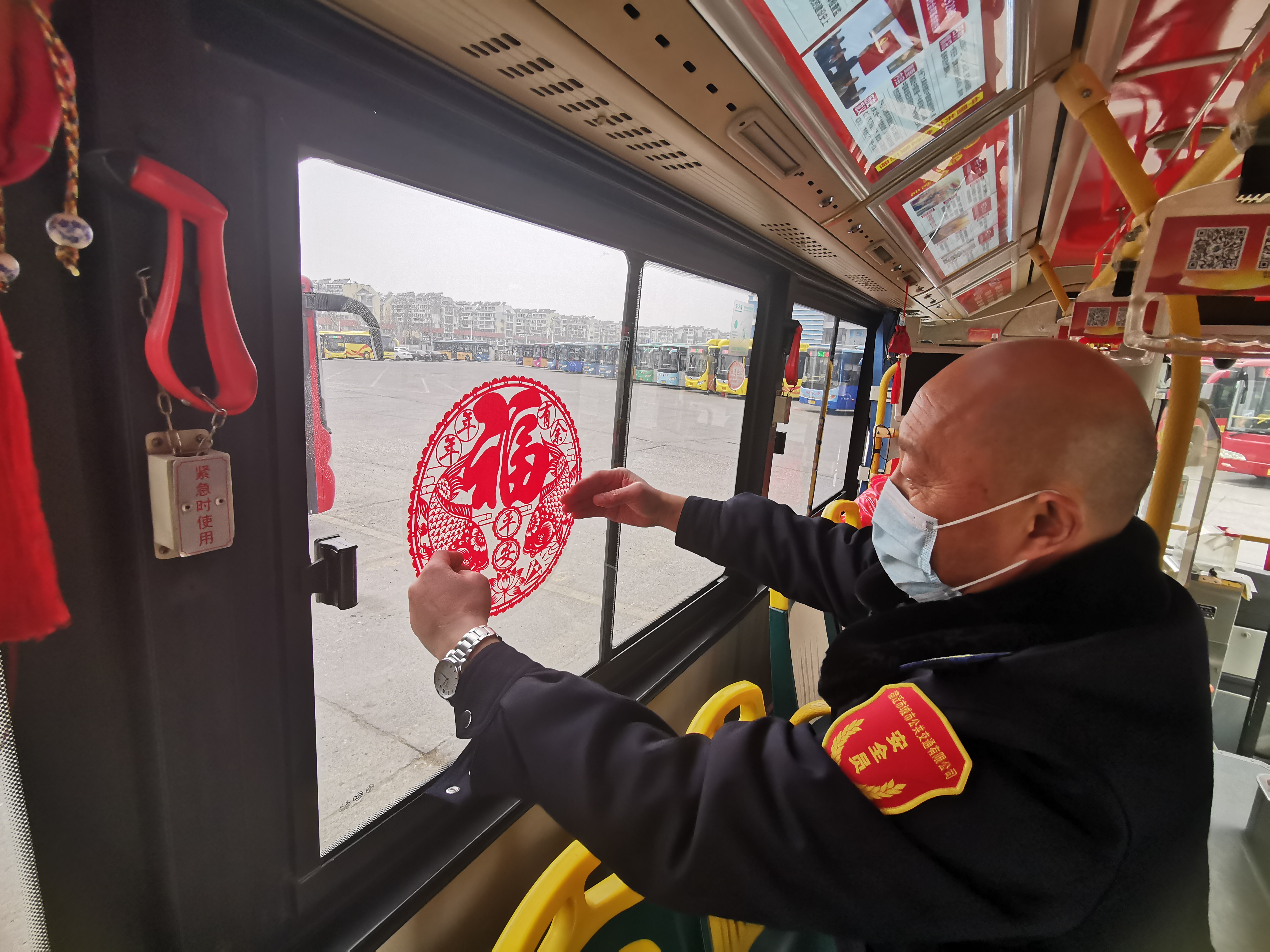 随着日历的翻页,年味越来越浓。1月28日,公交公司304路“信仰之路”红色主题车的驾驶员们早早来到调度站开始布置车厢:将车辆里外仔细打扫干净,车窗上贴着喜庆的福字和窗花,扶手上悬挂着吉祥的红灯笼,装饰挂件与红色主题车相映成趣,浓浓的年味顿时“洋溢”出来。