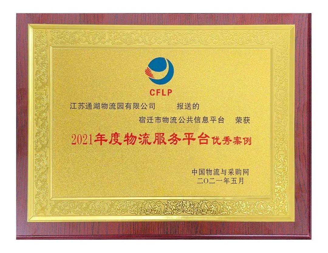 近日,由通湖物流园申报的“宿迁市物流公共信息平台”供应链信息化方案荣获“2021年度物流服务平台优秀案例”称号。