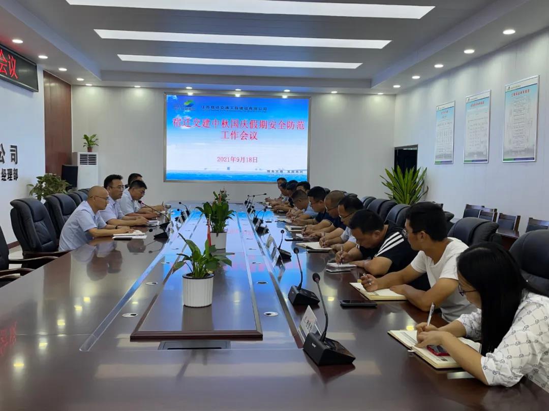 9月18日,宿迁交建在346省道宿豫段改扩建工程项目部召开中秋国庆假期安全防范工作会议,传达学习宿迁交通集团中秋国庆假期安全防范工作会议精神,就做好当前安全防范工作作出部署。