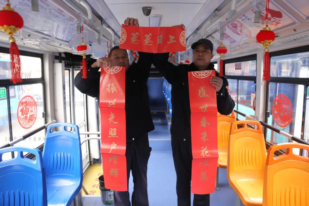 “这个灯笼再挂高一点,大红灯笼高高挂才好”“这个窗花真漂亮,往车窗上一贴立马喜庆了不少”“虎年接续奋斗,看我虎虎生威”......小年刚过,新车驾驶员们立即忙活起来,盛装打扮自己的“公交兄弟”,贴窗花、悬灯笼、挂福袋有条不紊,每位驾驶员都尽心尽力把自己的车辆装扮到最美,让市民一上车就能感受到节日的温暖。
