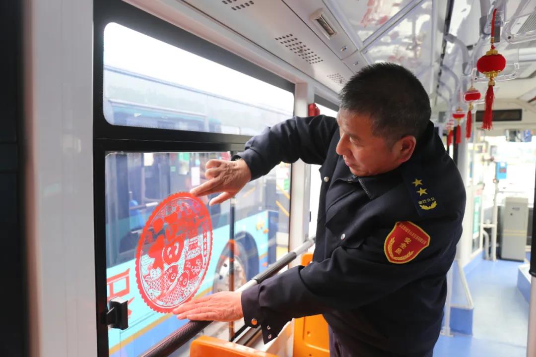迎春送祝福,接福纳祥过新年。公交公司推出“温暖回家路”春运特别活动,驾驶员们将车辆装扮的虎虎生威、喜气洋洋,让乘客一上车就能感受到浓浓的节日氛围;志愿者团队为乘客们送上“福”字、窗花和春联,将满满的新春的祝福送进车辆、递到手上,让年味更浓厚、出行更暖心,进一步提升乘客春节出行获得感、幸福感和安全感。