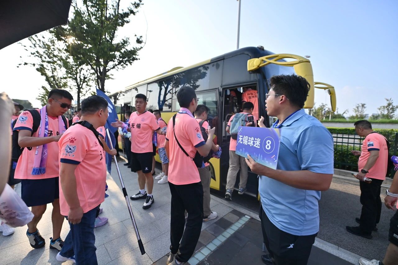 为方便无锡球迷前往现场观赛,宿迁交通集团在高铁宿迁站站前广场(上海路辅路)处,组织安排18辆定制公交,无缝接驳其直达比赛场地宿迁奥体中心,确保从“高铁下车”到“入场看球”的过程畅通无阻。