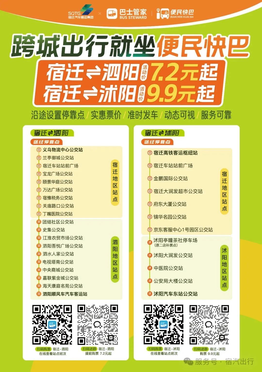 【宿汽集团】宿迁往返沭阳低至9.9元!便民快巴新线+1