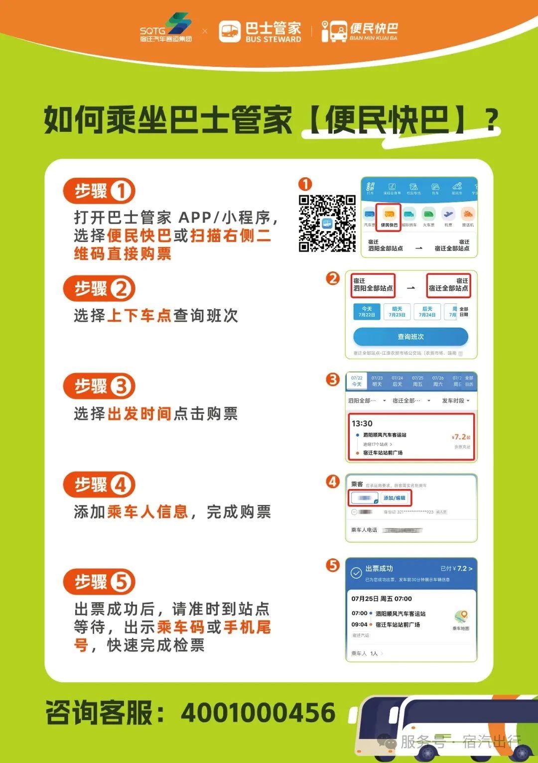 巴士管家APP或微信小程序购票