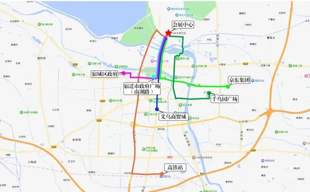 沿线接驳点:京东客服中心公交站点、宿迁市中医院公交站点、府东大厦公交站点、金鹰国际公交站点、大润发公交站点、江苏有线公交站点。