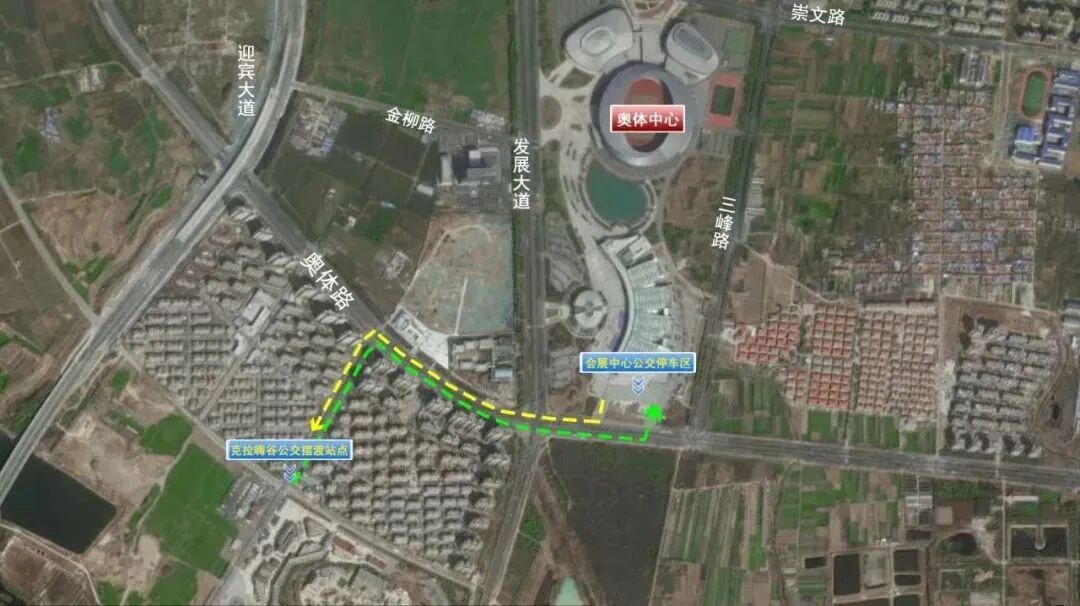 具体线路:发展大道--奥体路--会展中心(奥莱广场)