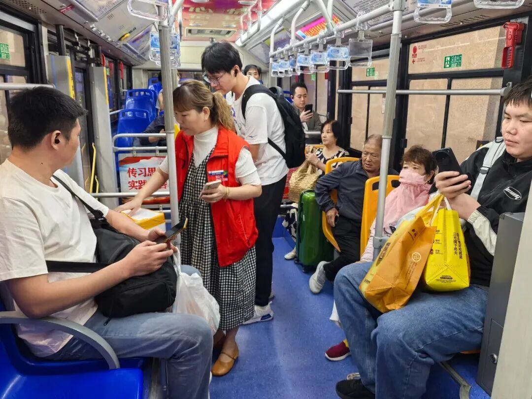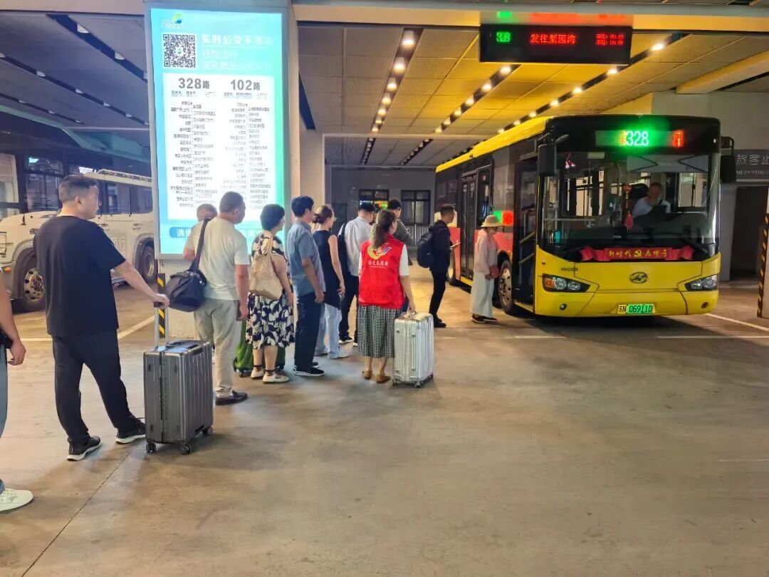 青年志愿者们也成为节日里的“温暖使者”。他们身着红色志愿服,活跃在各大公交站点。在高铁公交枢纽站,志愿者们主动帮携带大件行李的乘客搬运行李,引导他们快速找到乘车线路。