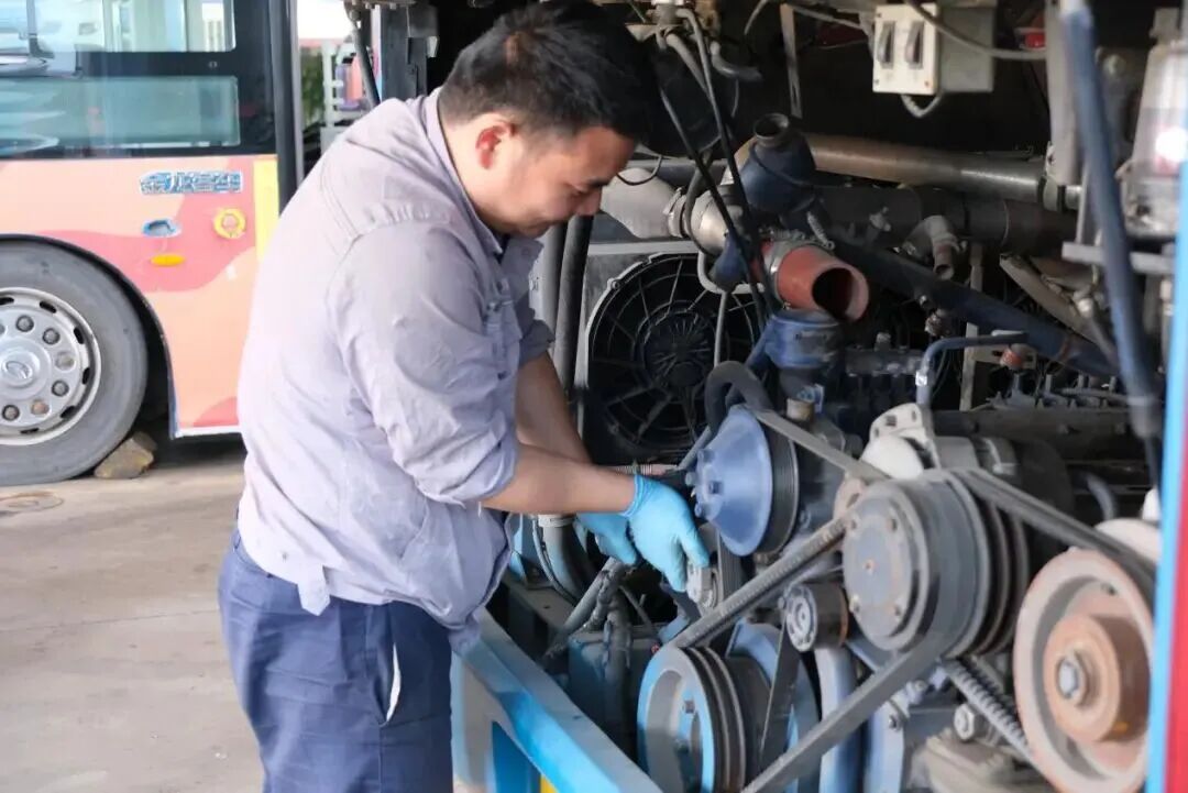 而在公交场站的维修车间,维修工人们实行轮班值守,对回场车辆进行“地毯式”检修,小到一颗螺丝的松紧,大到发动机的性能检测,不放过任何一个安全隐患,确保每一辆公交车都能“健康”上路。“节日里每辆车都关系着几百号人的出行,多花点时间排查,就能多一份安全保障。”娄德高师傅脸上的笑容格外质朴。